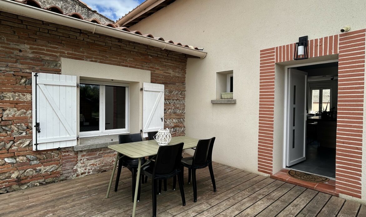 Eaunes, Charmante toulousaine T5/6 à étage, entièrement rénovée en 2018, située en fond d’impasse sur un terrain clos d’environ 1 000 m². Idéalement placée à proximité des commodités, cette propriété allie charme et modernité.